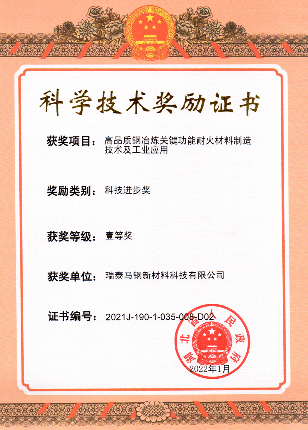 近日,集团所属瑞泰马钢新材料科技公司与武汉科技大学等单位共同完成的《高品质钢冶炼关键功能耐火材料制造技术及工业应用》项目,获得湖北省科学技术进步奖一等奖,该产品已在宝武 db彩票官网入口,马钢,湘钢等国内各大钢厂推广应用,成为公司新的利润增长点,该产品在耐火材料的绿色发展方面具有示范引领作用,经济,社会及环境效益显著。
