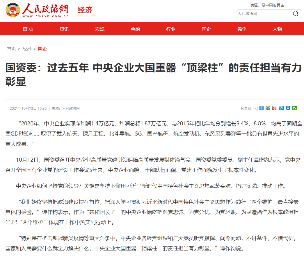 人民政协网、中国新闻网、腾讯网、今日头条 等网站报道中央企业高质量党建引领保障高质量发展通气会