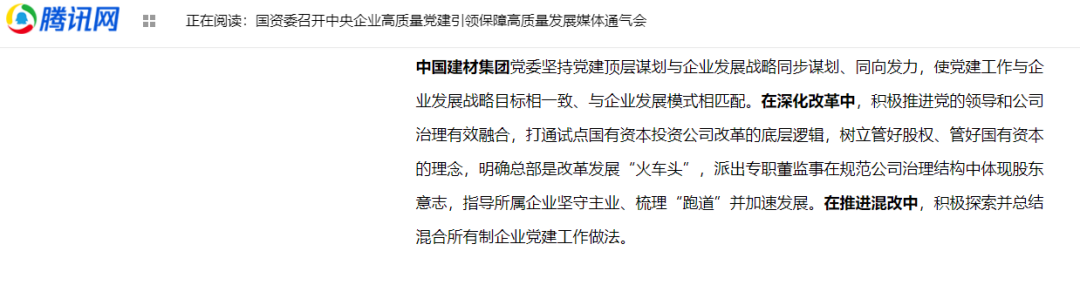 以高质量党建引领高质量发展,中国建材入选典型案例,央视、人民日报等媒体报道