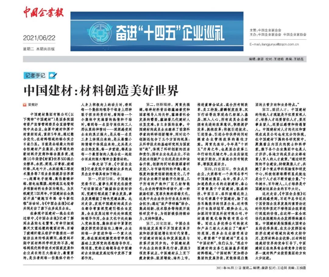 《中国企业报》“走进中建材”① | 中国建材:材料创造美好世界