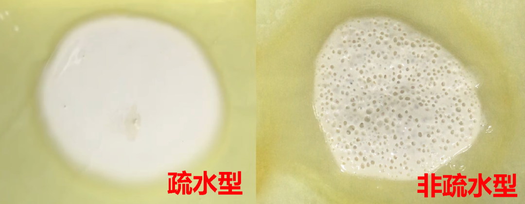 “广谱修复”--潮湿基面粘接性能:传统修复材料需要对基面进行烘干处理,然后进行灌浆修复。裂缝、离缝基面潮湿情况普遍存在,而狭长裂缝中水分难以在短时间内完全烘干,因此具有疏水性能、可以水中固化的修复材料需求应运而生。亲水注浆材料的疏水改性经历了复配、接枝、共聚等漫长的探索过程,最终将疏水基团共聚于多元醇分子主链结构,实现了最佳的疏水效果,大大提高了材料的环境适应能力,达到“广谱修复”的效果。