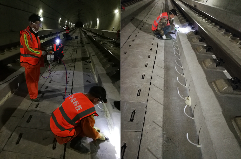高铁无砟轨道在冻融循环,化学侵蚀,高频动荷载等环境及荷载作用下,会产生裂缝 db彩票安卓版,离缝,脱空,沉降等病害,影响轨道的平顺性,及时的保养维护可以有效延长轨道的使用寿命,然而,日常繁忙的铁路运输留给工程维修作业的天窗时间并不长,一些疑难杂症的处理就要依靠“特效药”。