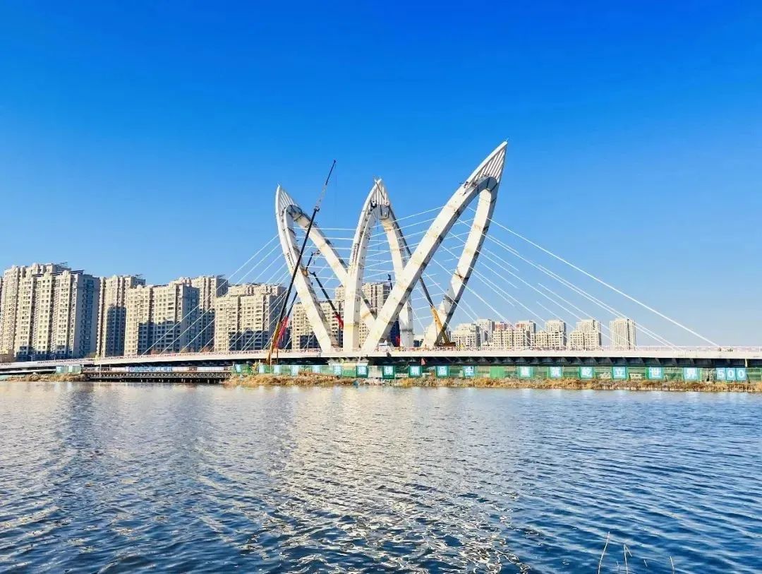 徒骇河大桥 db彩票官网入口,该桥主跨388米,使用了4根碳纤维斜拉索,平均长度13米。