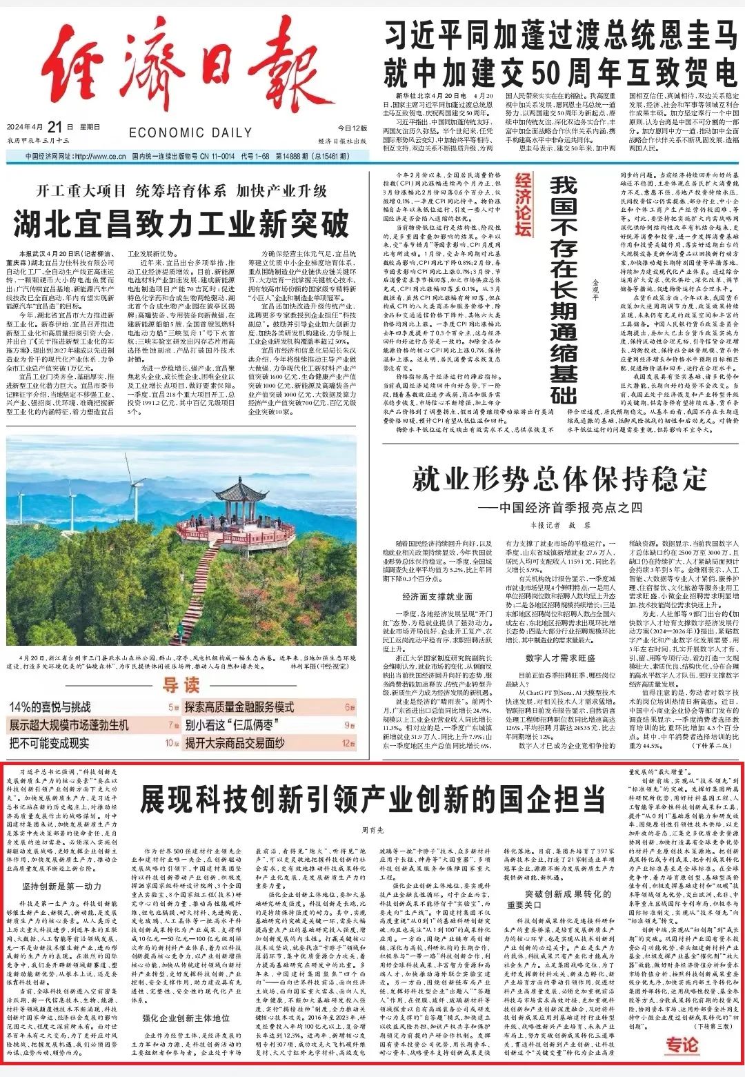 《经济日报》专论 | 周育先:展现db彩票手机版引领产业创新的国企担当