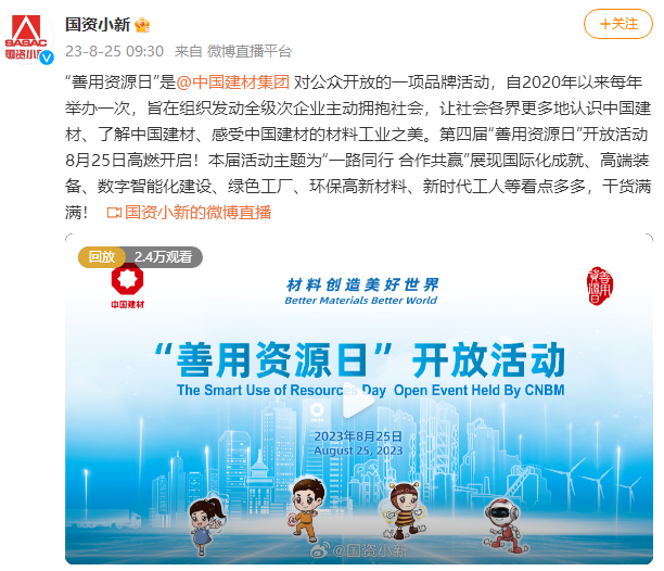 "db彩票手机版" 中国建材集团第四届“善用资源日”开放活动燃爆出圈