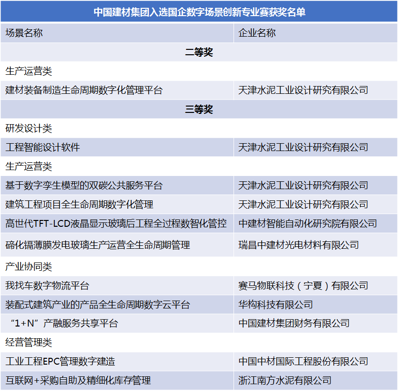 中国建材集团多个场景入选首届国企数字场景创新专业赛获奖名单