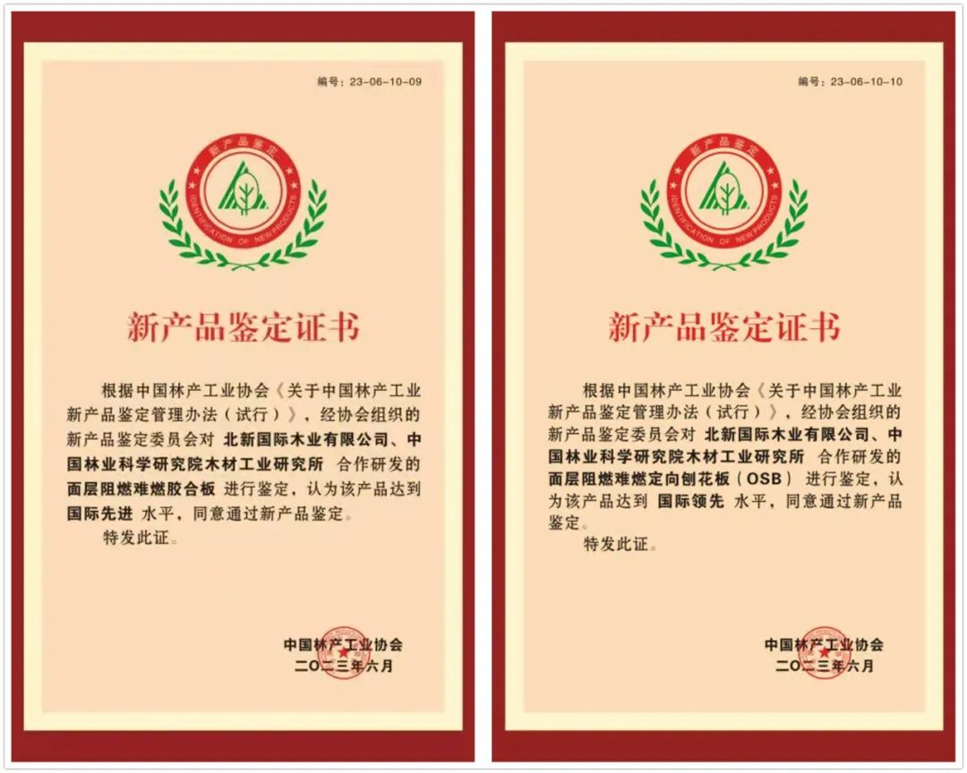近日,北新集团所属北新木业与中国林业科学研究院木材工业研究所联合研制的阻燃难燃产品通过中国林产工业协会组织的新产品鉴定,鉴定委员会站在行业高度进行充分质询讨论与审议复核,最终认定北新木业“面层阻燃难燃定向刨花板(OSB)”具有较强的创新性,达到“国际领先”水平,“面层阻燃难燃胶合板”具有创新性,达到“国际先进”水平 db彩票官网。