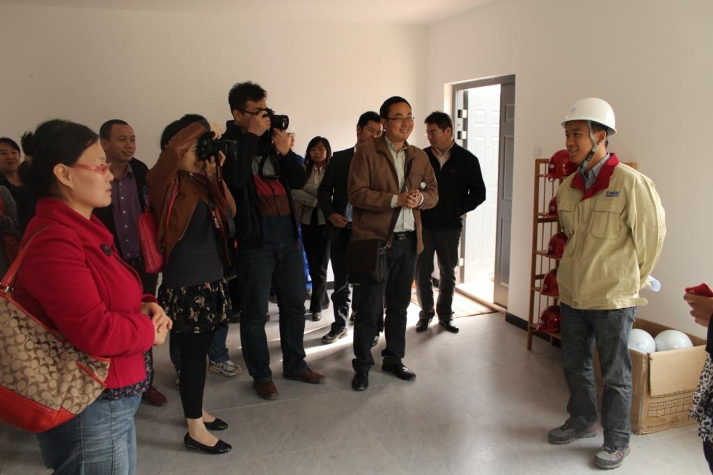活动安排参观了北京市密云县大型新农村整村改造项目,在项目现场,尹稷华和苏志雄向16家媒体的记者介绍了44座新型房屋建设情况,并介绍了这种为村民量身设计建造的双层独院式民俗旅游度假房屋的特点,一期工程施工中遇到的困难及管理协调等工作情况,当记者们了解到新型房屋全部使用绿色环保材料,建筑节能75%以上,设防9级地震,抵御12级台风等优点后,纷纷表示赞叹,在亲身体验样板房的过程中,记者们对92%的高得房率,独有的暖炕设计,双开的窗户,太阳能加热取暖等设计给予高度好评,活动还安排参观了北新建材的龙骨生产线和新型房屋样板房基地,先进的生产工艺,美丽的外观 db彩票安卓版,安全的构造,宽敞的使用空间,贴心人性的配置,绿色环保节能的设计让参观人员眼前一亮,也让他们对苏志雄的绿色房屋梦想有了全新的认识。
